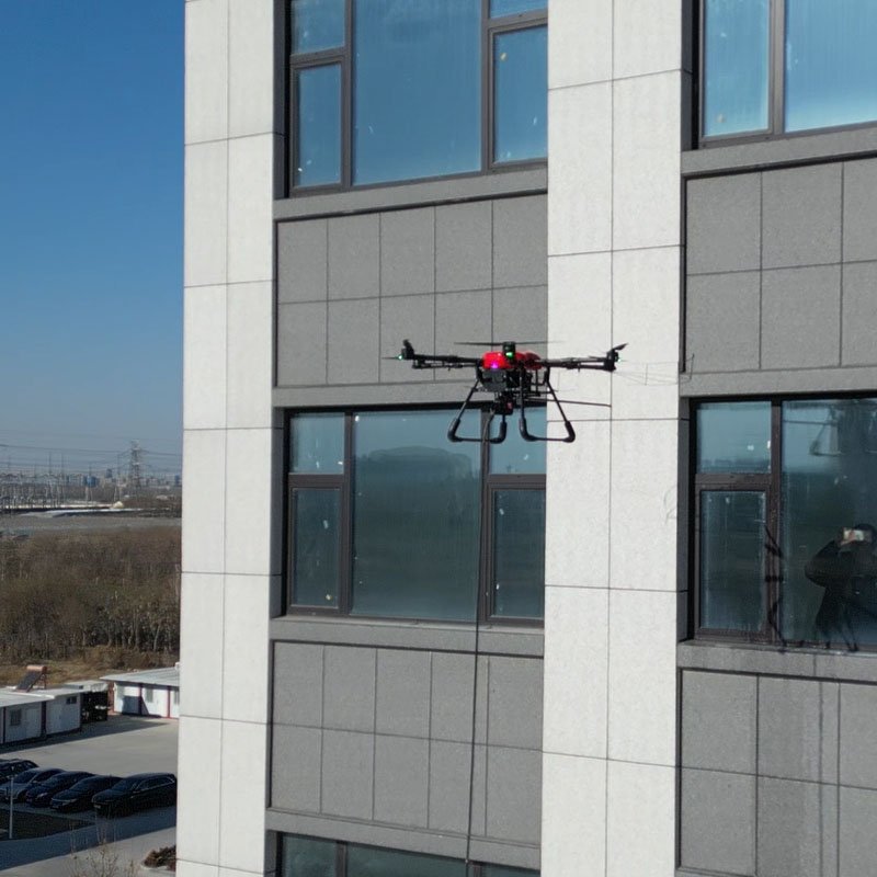 Our building washing drone, made with aviation aluminum, resists corrosion from rain, ideal for outdoor Glass Curtain Walls.Backed by ISO9001, it’s tested in 100 countries, proving adaptability to diverse Glass Curtain Walls environments.